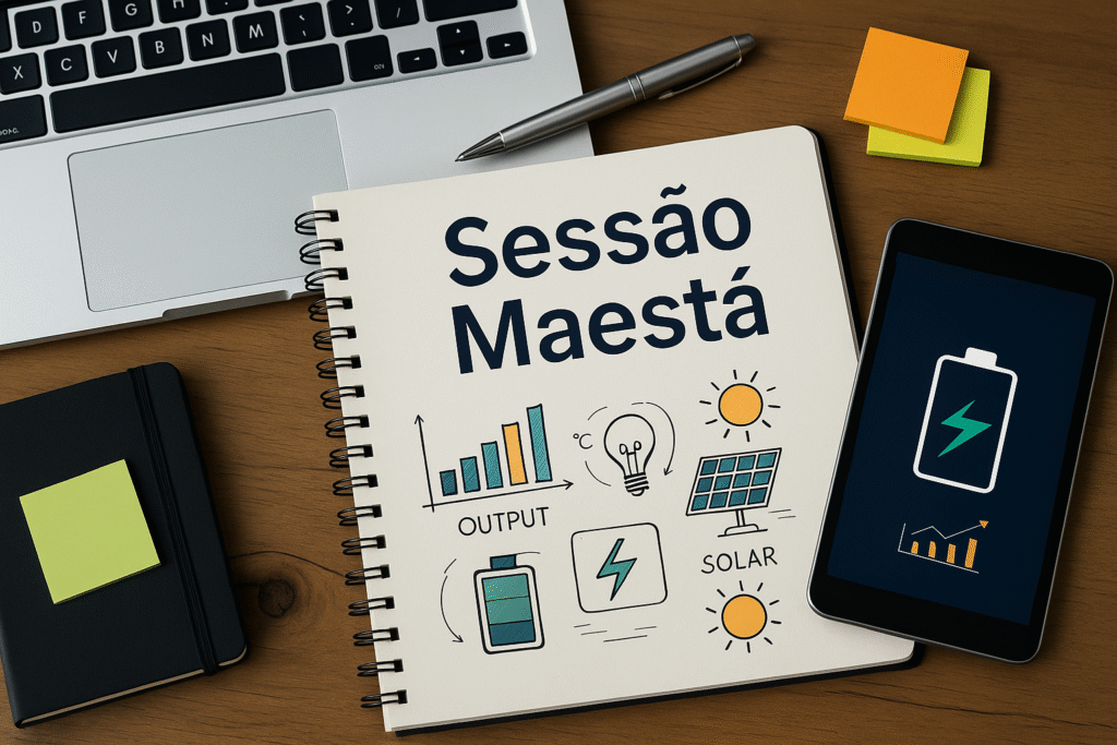É um encontro online e ao vivo de 30 minutos com Natália Maestá, referência nacional em armazenamento de energia e soluções solares. Você terá acesso direto a orientações práticas e estratégicas para o seu projeto ou negócio.
